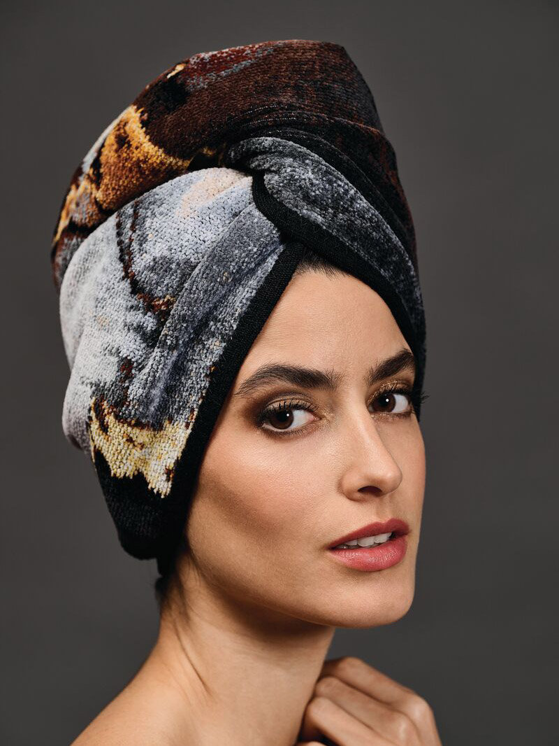 Бережная сушка: Оберните тюрбан из полотенца вокруг влажных волос после душа или ванны. Ткань из шенилл может впитывать до пяти раз больше воды, чем весит сама, что позволяет тюрбану быстро и бережно высушить волосы, не повреждая их. Это экономит время при сушке феном и уменьшает стресс для волос.