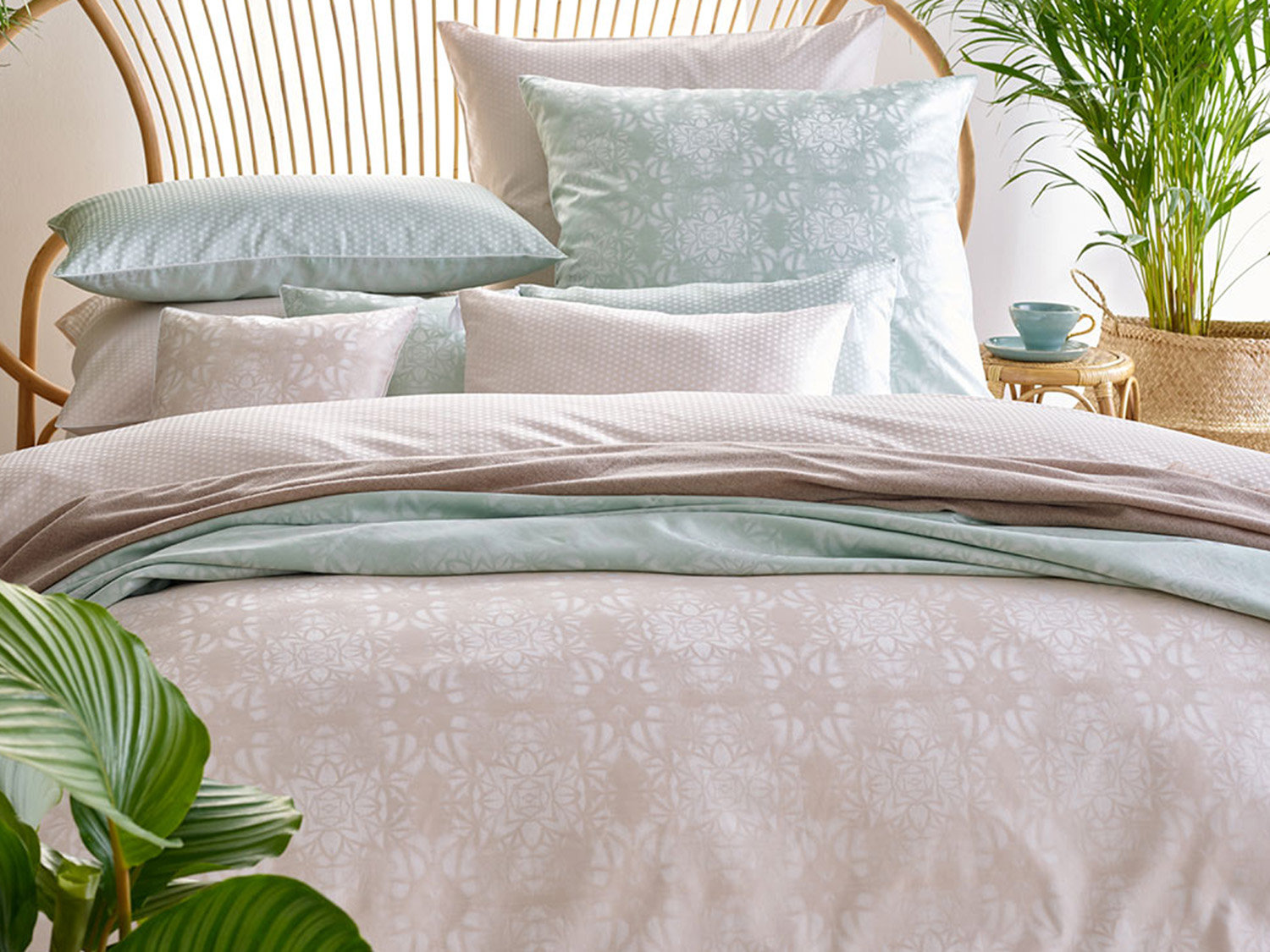 Это постельное белье очаровывает своим графическим и игривым дизайном. Орнаменты верхние части плавно растворяются в мягких оттенках, в то время как сзади небольшой современный рисунок занимает современную часть ансамбля. Четырехсторонняя окантовка наволочки еще больше подчеркивает этот гармоничный дизайн.