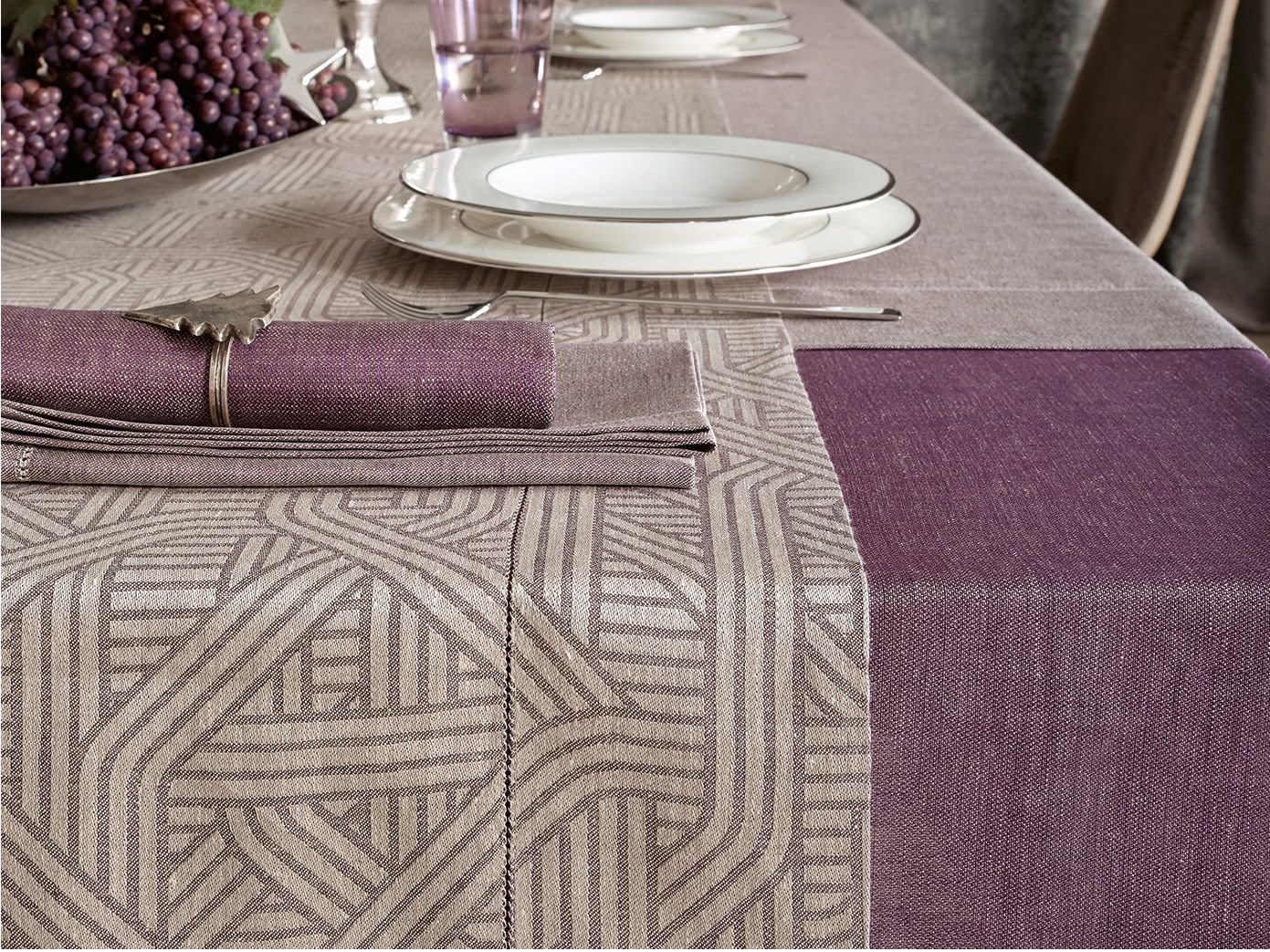 Этот дизайн из 100% льна, пряжи высшего качества с тончайшими нюансами, доступен в виде салфеток под тарелки, дорожек для стола, скатертей, которые привнесут шарм вашей кухне и столовой.