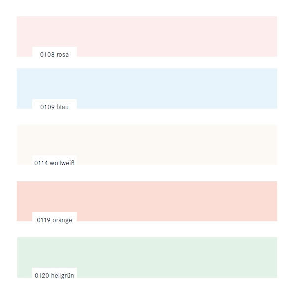 Цвет: однотонный. 0108 (rosa) розовый, 0109 (blau) голубой, 0114 (wollweiß) натуральный белый, 0119 (orange) оранжевый, 0120 (hellgrün) светло-зеленый