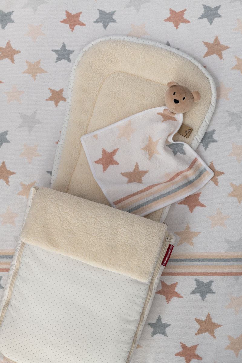 Уход: стирка при 60 °C (для салфетки с мишкой при 40 °C), машинная сушка