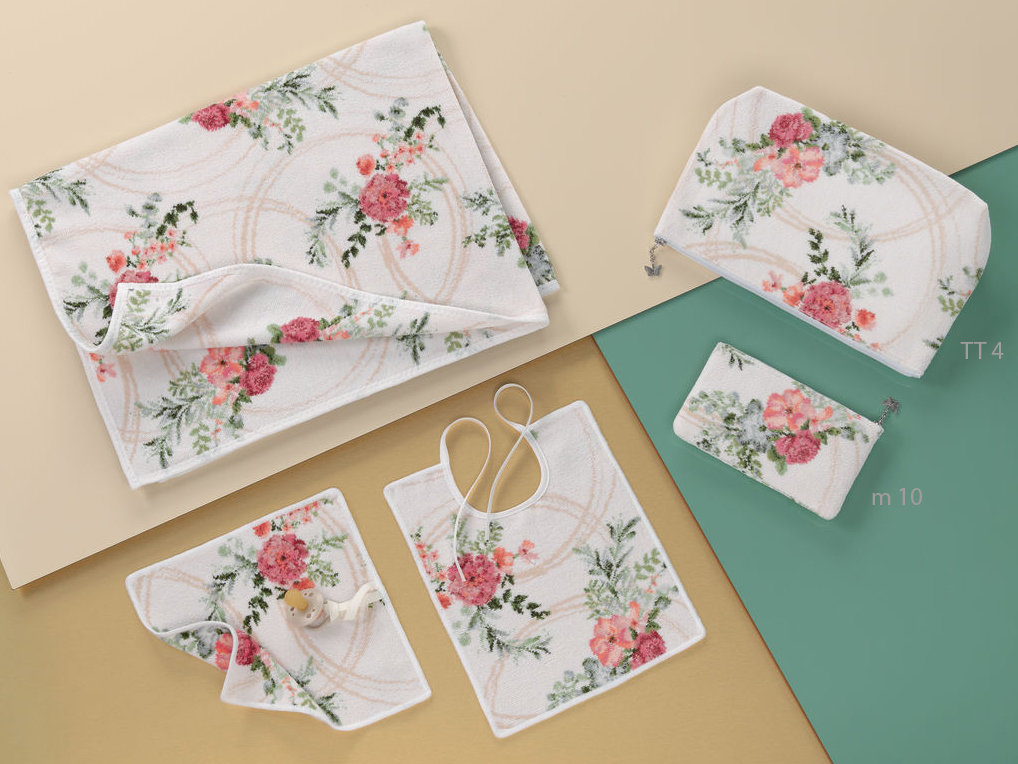 - Коллекция состоит из полотенец, нагрудника, одеяла для коляски / пледа 75х100 см, косметичек